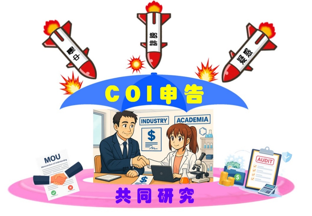 もうちょっと掘り下げると、特例を認めた“学会側の意図”は、(僕の推測だけど・・・)【共同研究は、研究費や研究計画、人的資源を双方で共有している。だから、その関係性は隠された私的利害や一方的な金銭提供とは異なる。したがって、所属を明らかにして共同発表している以上、それ自体が十分な透明性ではないか】、という論理だと思うんだ。でも、これは、たしかに一昔前であれば十分に通用した考え方なんだけど、最近の考え方としては、【共同研究=COIではない】という前提が、もはや成り立たなくなってきているんだよ。」